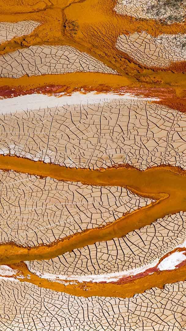 The Rio Tinto, in Andalusia, Spain, gets its strange color from dissolving iron deposits in the highly acidic water. Beginning more than 5,000 years ago, this area was mined for gold, silver, and other treasures. And archeological evidence suggests that about 3,000 years ago this may have been the site of King Solomon’s legendary mines. Scientists believe that pollution from the mines contributed to the extreme ecological conditions we see in the Rio Tinto today.