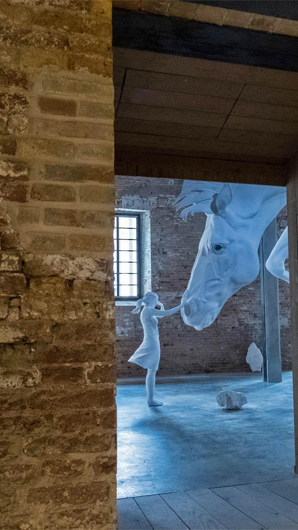 Our photo today shows a small part of artist Claudia Fontes’ sculpture called "El Problema del Caballo" (The Horse Problem). The Argentinian artist exhibited the large installation work with smashed pieces of stone surrounding the larger-than-life white horse, as if it had crashed into the exhibition space. The installation was shown in 2017 at the Venice Biennale, where artists from around the globe bring their work to show off at this every-other-year arts and culture festival in the Italian city of Venice. The Biennale is just starting up again this month, and many of the programs and exhibits will be going on through the summer and into fall.